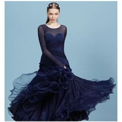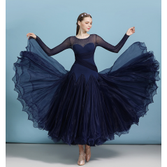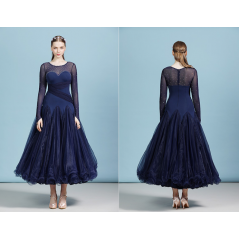 Dámské taneční dlouhé šaty s dlouhými rukávy. Profesionální šaty šité našim nejlepším výrobcem tanečních šatů, který při šití šatů pro nás používá ty nekvalitnější materiály. Všechny spoje jsou sešité pružnou nití, střih je takový, aby nikde tanečnici neomezoval v žádné taneční kreaci. Materiál je nejenom že velice komfortní v pestrých barvách ale rovněž i pružný, takže se v našich šatech budete cítit velmi pohodlně bez obavy z jakéhokoliv poškození při tanci.