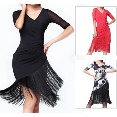 Dámské elegantní taneční šaty nejen na latinsko-americké Julieta s dlouhými třásněmi.