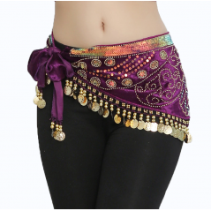 This coin scarf, richly decorated around the perimeter, is lower rather than a belt. It ties around the hips and sits low on the hips and does not slip.