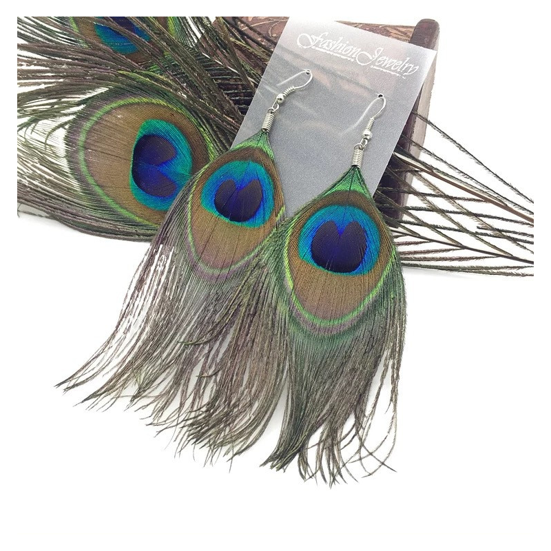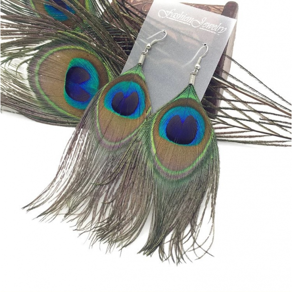 Original earrings made of real peacock feathers.