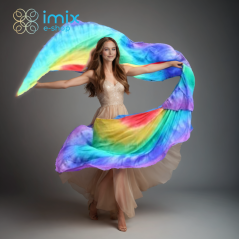 This silk veil is also a great choice for dancing with two semicircular veils that areou very popular in recent years. In this style, the dancer holds one veil in each hand and creates the effect of rainbow wings waving and swirling around her in graceful movements. The result is extremely impressive - visually reminiscent of elegant butterfly or angel wings, and absolutely mesmerising on stage.