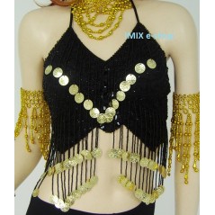 Decorative TOP in the shape of a BUTTERFLY richly decorated with beads and gold coins. Soft cups are sewn into the TOP, so there is no need for a bra. At the back and behind the neck is a TOP for tying. At the back, TOP commits to the cross (see picture). The tops are richly decorated with coins that clink when gently dancing.