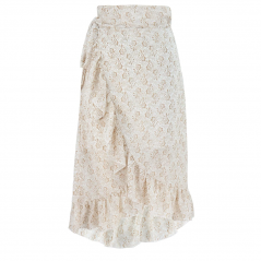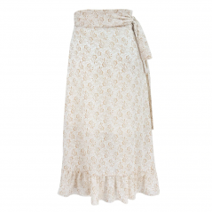 Ľahučké dámske letné šifónová sukňa s veľmi nežným decentným kvetinovým vzorom. Obloučkový strih a volániky po celom spodnom obvode podčiarkujú nežnú ženskosť. Vďaka zaväzovanie je sukňa vhodná pre všetky menšie a stredné konfekčnej veľkosti. V páse tak nikde neťahá, perfektne sedí. Vzdušný tenký Šifónový materiál, ktorý sa nekrčí. Sukňa je živá, pri chôdzi pohyblivá a kopíruje pohyby, je teda vhodná aj k tancu.