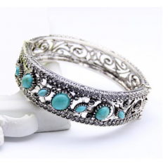 Dámsky širší mohutný náramok filigránový s otvormi zdobený zirkónmi a kameňmi.
